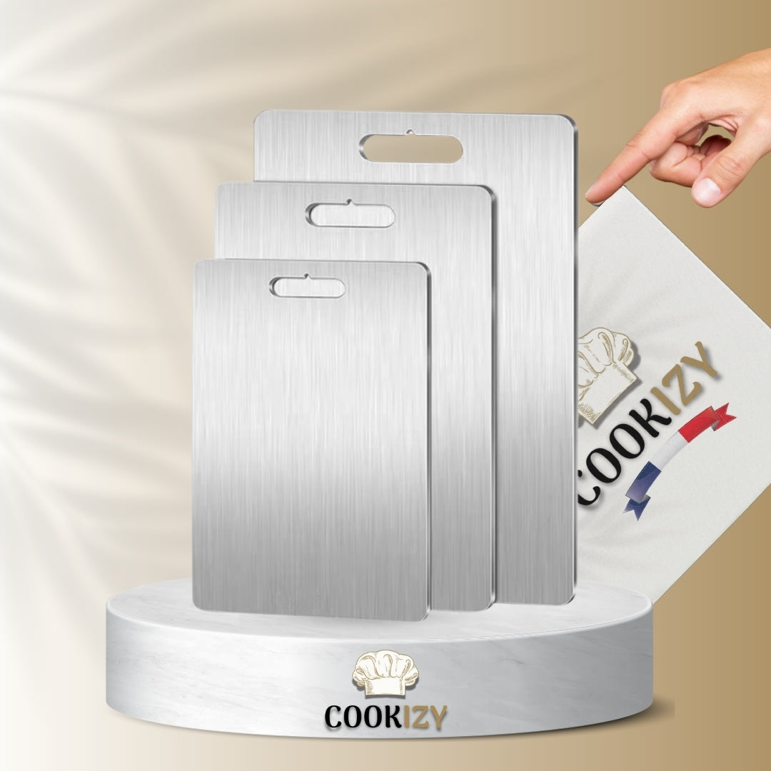 La planche de Cookizy est fabriquée à partir de Titane pur de qualité médicale, le même matériau utilisé dans la plupart des implants chirurgicaux car il est complètement antibactérien…